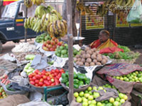 औंध येथे दर मंगळवारी धान्याचा व शेळ्या मेंढ्यांचा बाजार भरतो. सदर बाजारचे दिवशीं आसपासचे खेड्यांतून सर्व प्रकारची धान्यें, भाजीपाला, फळफळाव, लोणी वगैरे सर्व जिन्नस विक्रीकरितां येतात. दूरदूरचे व्यापारी कापड, मसाल्याचे जिन्नस घेऊन येतात. सदर दिवशीं जनावरांची खरेदी विक्रीही बर्याच प्रमाणावर होत असते.